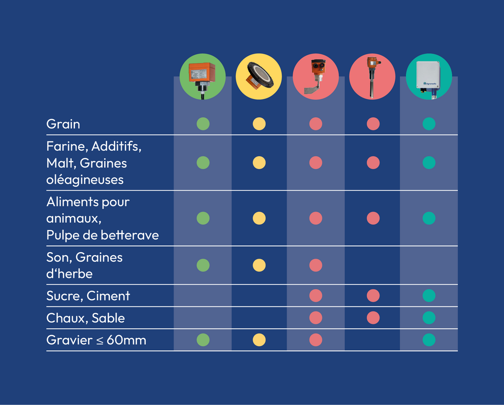 Pour la mesure continue du niveau, Agromatic propose une technologie de capteurs mécaniques et radar :